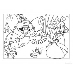 Children's coloring book Mole and hare A5 with colorful pictures and templates for developing children's imagination. Painting according to the template.