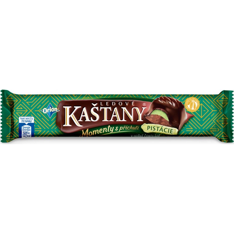Horká čokoláda s náplňou 27,6 % s príchuťou pistácií a kakaovoorieškovou náplňou 27,3 %. Kakaová sušina v horkej čokoláde najmenej 36 %. Zloženie: cukor, rastlinné tuky (palmový, palmojadrový, olej zo semien maslovníka), kakaová hmota(1), sušené mlieko, sušený výrobok mliečnej srvátky, lieskovooriešková pasta 1,9 %, kakaové maslo(1), MLIEČNY tuk, 1,5 % kakaového prášku so zníženým množstvom tuku(1), emulgátory (lecitíny, polyglycerolpolyricínoleát), prírodné arómy (obsahujú vlašské orechy), jedlá soľ, farbivá (meďnaté komplexy chlorofylov a chlorofylínov, kurkumín), Kakaová sušina v horkej čokoláde najmenej 36 %, Okrem kakaového masla obsahuje horká čokoláda aj iné rastlinné tuky Môže obsahovať arašidy, iné orechy a sóju.