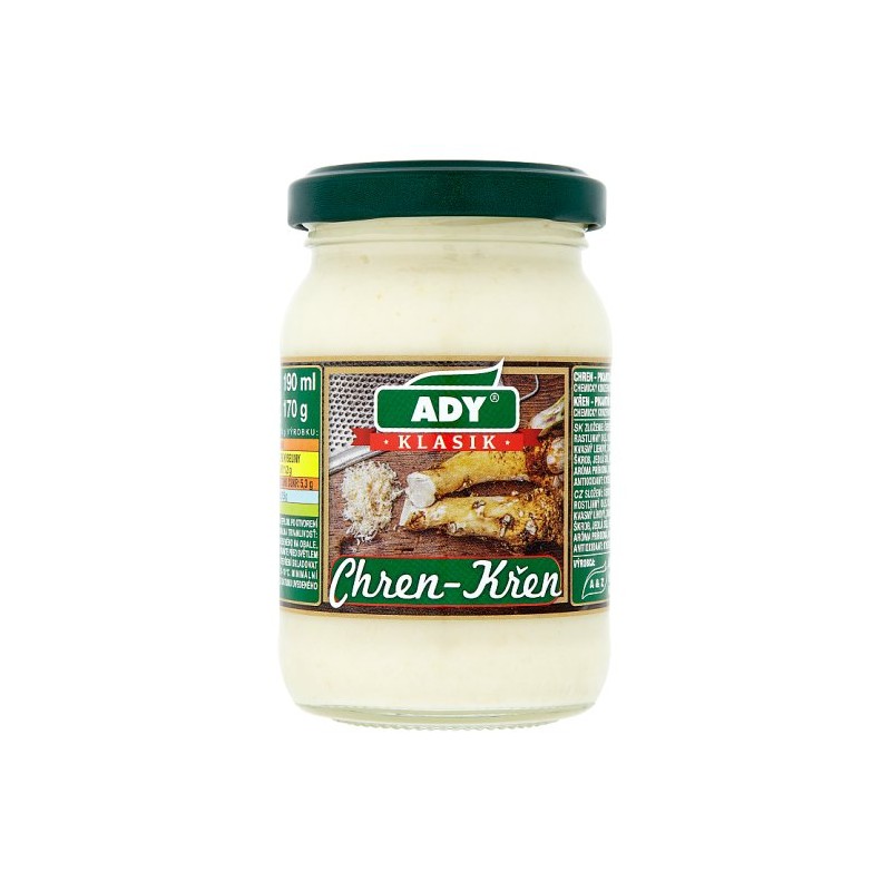 Zloženie: chren (75 %), voda, rastlinný olej repkový, ocot kvasný liehový, cukor, jedlá soľ, zahusťovadlá: kukuričný škrob, guarová a xantánová guma, Konzervačná látka: disiričitan draselný, regulátor kyslosti: kyselina citrónová