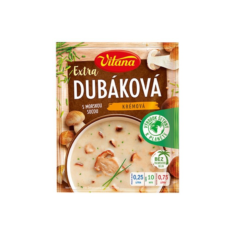 Zloženie: Zloženie suchej zmesi: Zápražka (pšeničná múka, bravčový tuk), Morská soľ 10,5 %, Šampiňóny sušené mleté a kúsky 6 %, Hríb pravý sušený kúsky 1,1 %, Masliak sušený mletý 1,1 %, Škrob, Škvarená bravčová slanina, Restovaná cibuľa (obsahuje repkový olej), Kvasnicový extrakt, Arómy, Pažítka 0,3 %, Korenie biele mleté 0,1 % Môže obsahovať vajcia, mlieko, zeler, sóju, horčicu.
