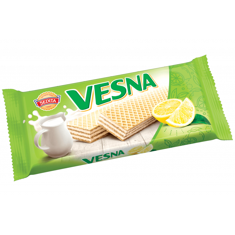 Oblátky s mliečno - citrónovou krémovou náplňou (78%).