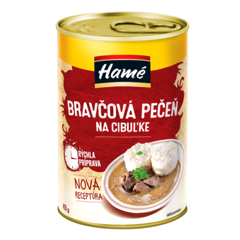 Zloženie: voda, bravčová pečeň 31 % hm., cibuľa 11,5 % hm., údená slanina (slanina, soľ, stabilizátor: dusitan sodný), repkový olej, PŠENIČNÁ MÚKA, kukuričný modifikovaný škrob, soľ, koreniny, koreniaci prípravok (dextróza, soľ, sušená zelenina (paštrnák, ZELER, mrkva, petržlenová vňať), extrakty korenín), cesnakový výťažok.
